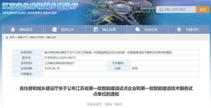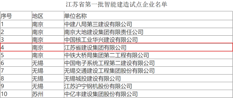 8月19日,江苏省住房和城乡建设厅公布了江苏省第一批智能建造试点企业名单,伟德源自英国始于1946名列其中。